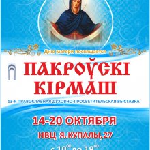 13-я духовно-просветительская выставка-ярмарка “Пакроўскі кірмаш” пройдет по решению Синода Белорусской Православной Церкви с 14 по 20 октября в НВЦ “Белэкспо” (ул. Я. Купалы, 27). Выставка будет работать ежедневно с 10.00 до 19.00, а 20 октября до 15.00.
