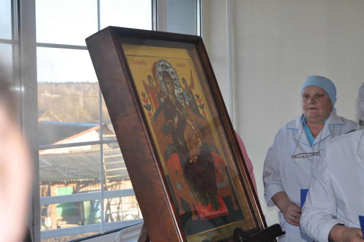 Следующим местом, куда была доставлена икона Божией Матери «Всецарица» стала Быстрицская участковая больница с палатами паллиативной помощи «Хоспис». Здесь были переданы необходимые вещи, собранные для хосписа во время проведения акции и также отслужен молебен с акафистом. Отец Кирилл рассказал о том, что в рамках проекта «Дорога Милосердия», Синодальный отдел по церковной благотворительности и социальному служению совместно с епархиальными отделами и волонтерскими организациями, посетит все хосписы Беларуси.