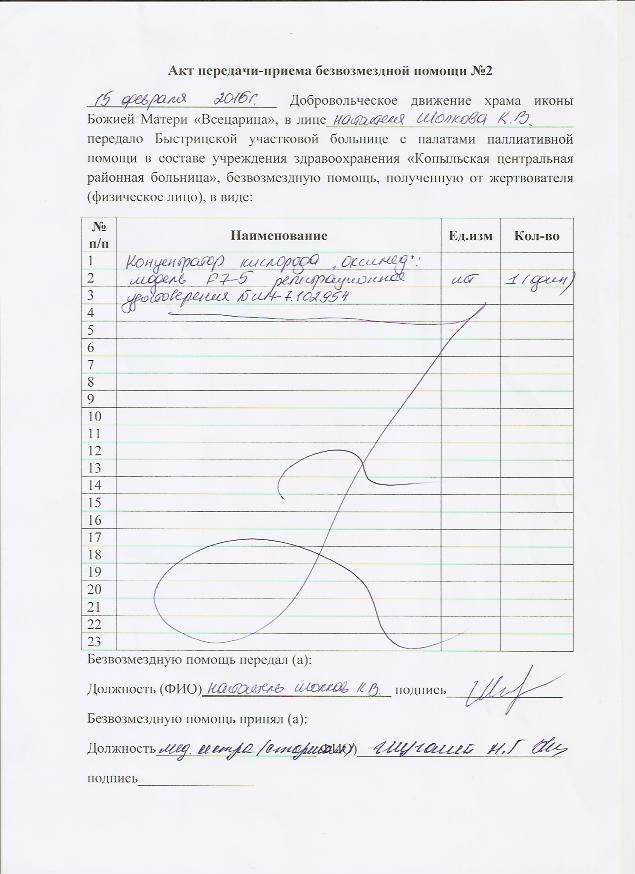 15 февраля в праздник Сретения Господня добровольцы передали Быстрицкой участковой больнице с палатами паллиативной помощи концентратор кислорода, который позволяет подавать пациенту кислород в более высокой концентрации, чем в атмосферном воздухе.