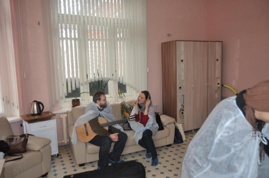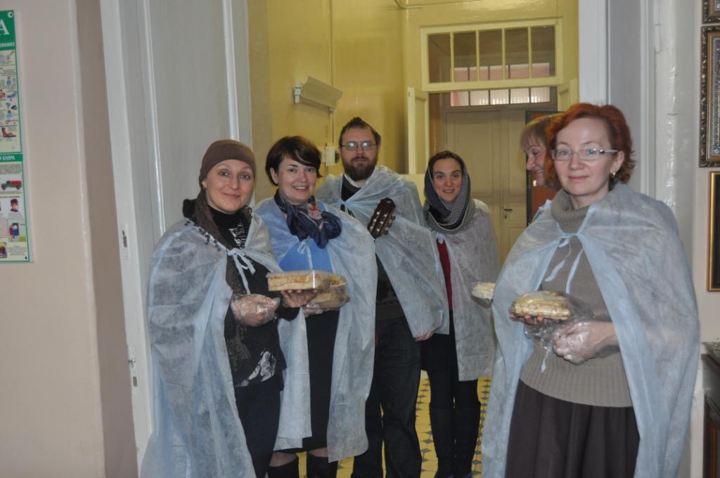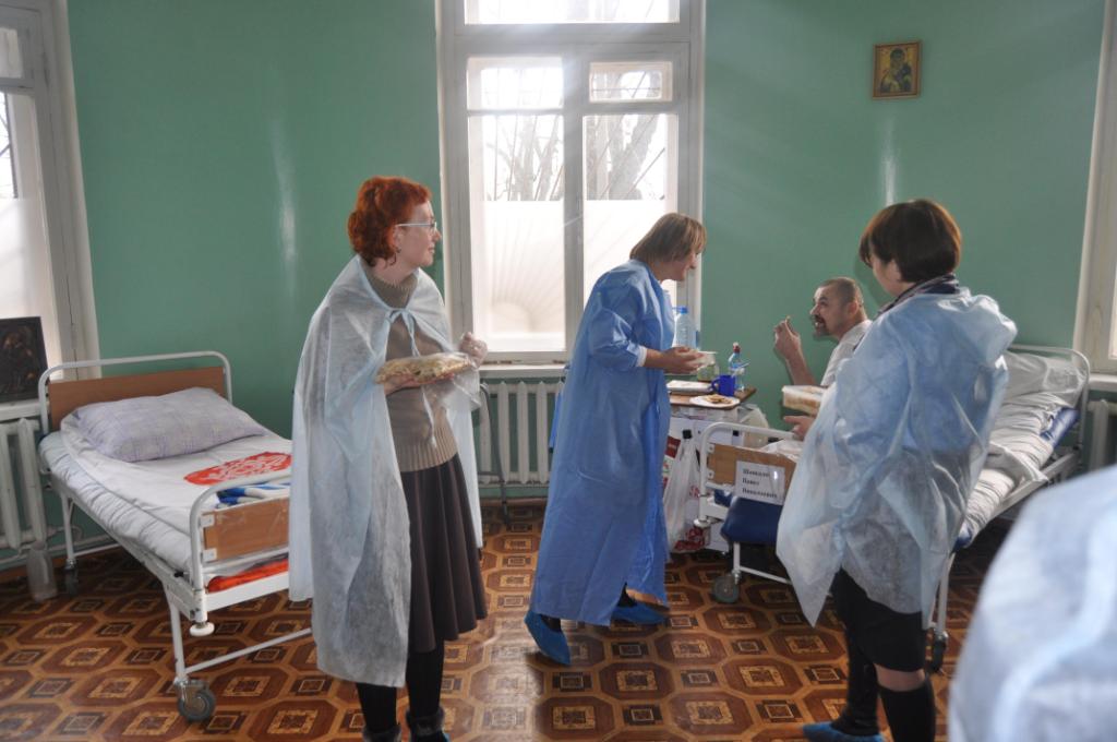 Добровольцы посетили отделение паллиативной медицинской помощи "Хоспис" и вместе с пациентами отметили Масленицу. На просьбу помочь с музыкальным сопровождением откликнулся замечательный гитарист Юрий Шишко, добровольцы исполнили любимые песни пациентов. По случаю Дня рождения одной пациентки все присутствующие пожелали ей Многая лета. Затем добровольцы угостили всех с любовью приготовленными блинами.