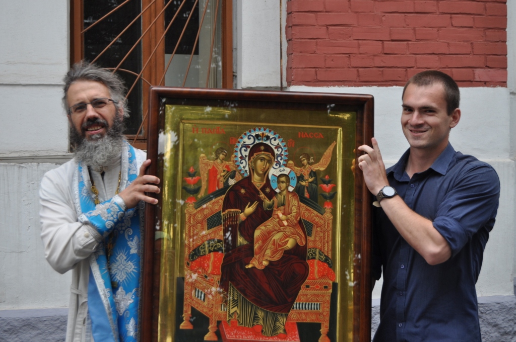 4 июля 2016 – четвертая годовщина прибытия в храм иконы Божией Матери “Всецарица” одноименной иконы из обители Ватопед. По случаю годовщины состоялись Богослужения в храме по ул. Грушевской, 50. После Божественной Литургии добровольцы отправились в отделение паллиативной медицинской помощи “Хоспис” по ул. Автодоровской, 3а, куда была также доставлена икона. В хосписе врачи, пациенты и добровольцы помолились на молебне перед иконой Божией Матери “Всецарица”. Затем все присутствовавшие приложились к иконе, а протоиерей Кирилл Шолков окропил палаты отделения.