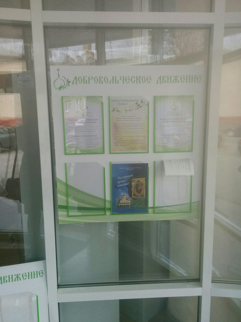 В магазине "Калі ласка" появился Добровольческий стенд. На нем каждый желающий найдет информацию о храме иконы Божией Матери "Всецарица", о Добровольческом движении. Там будут размещаться отчеты о проведенных акциях, о помощи хосписам.