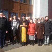 12 марта в часовне в Минском городском клиническом онкологическом диспансере прошла Божественная Литургия с участием добровольцев. После добровольческой Литургии состоялось чаепитие по случаю Масленицы, на котором добровольцы обсудили план работы движения, а также узнали интересную историю о создании хора "Радуйся", рассказанную его участниками.