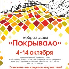 14 октября, в праздник Покрова Пресвятой Богородицы, завершилась добрая акция “Покрывало”. «Вера без дел мертва» — под этим апостольским девизом участники добровольческого движения прихода храма иконы Божией Матери «Всецарица» организовали сбор нужных вещей для людей, находящихся под опекой отделения паллиативной медицинской помощи «Хоспис» города Минска.