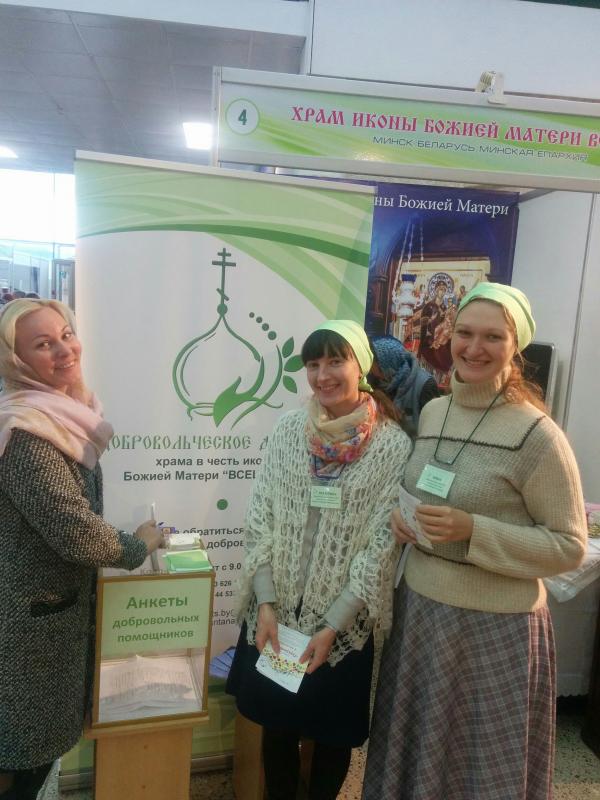 Возле иконы Божией Матери “Всецарица” на выставке «Пакроўскі кірмаш» постоянно дежурили волонтёры добровольческого движения помощи онкобольным, которых можно было узнать по светло-зелёным косынкам. Добровольцы с радостью рассказывали о Святыни, приходе храма иконы Божией Матери “Всецарица” и зародившемся добровольческом движении. Ежедневно протоиерей Кирилл Шолков, настоятель храма иконы Божией Матери “Всецарица”, служил молебен возле иконы. Все посетители выставки могли принять участие в соборном пении акафиста перед иконой Божией Матери “Всецарица”. По завершению молебна отец Кирилл помазывал верующих маслицем, привезенным со Святой Горы Афон, от первообраза иконы Божией Матери “Всецарица”.