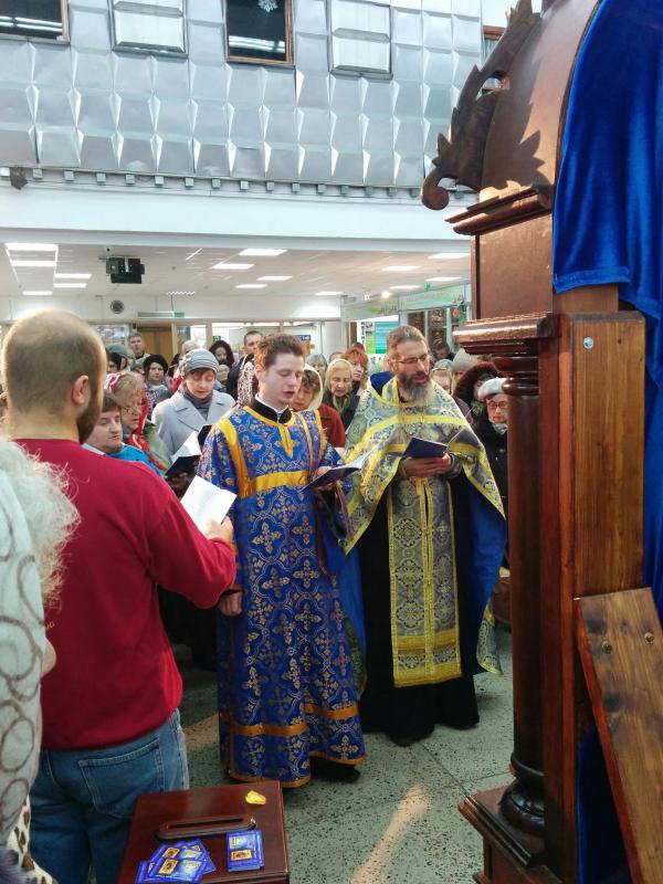 Церемония официального закрытия “Пакроўскага кірмаша – 2015″ проходила также у иконы Божией Матери “Всецарица”. Протоиерей Кирилл Шолков и дьякон Иоанном Лященко в сопровождении хора прихода храма иконы Божией Матери “Всецарица” отслужил молебен с акафистом. Получив благословение отца Кирилла, посетители “Пакроўскага кірмаша” торжественно проводили икону Божией Матери “Всецарица”, которая была возвращена на приход.