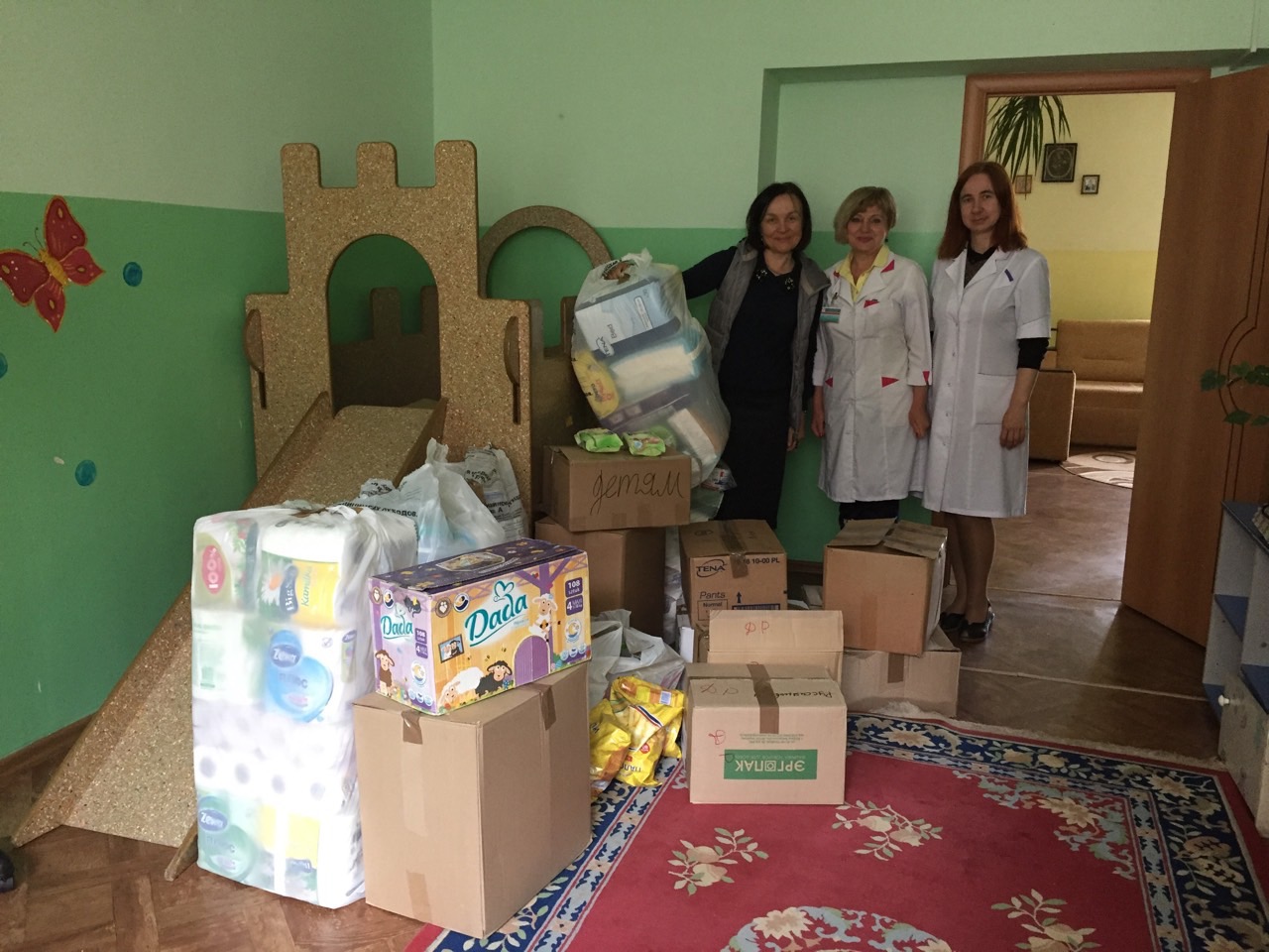 - 46 штук по акции "Заботливая коробка" - "Соседи" вместе с проектом "Белорусский попечитель - помощь в каждый интернат".