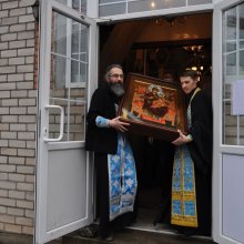 Следующим местом, куда была доставлена икона Божией Матери «Всецарица» стала Быстрицская участковая больница с палатами паллиативной помощи «Хоспис». Здесь были переданы необходимые вещи, собранные для хосписа во время проведения акции и также отслужен молебен с акафистом. Отец Кирилл рассказал о том, что в рамках проекта «Дорога Милосердия», Синодальный отдел по церковной благотворительности и социальному служению совместно с епархиальными отделами и волонтерскими организациями, посетит все хосписы Беларуси.