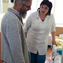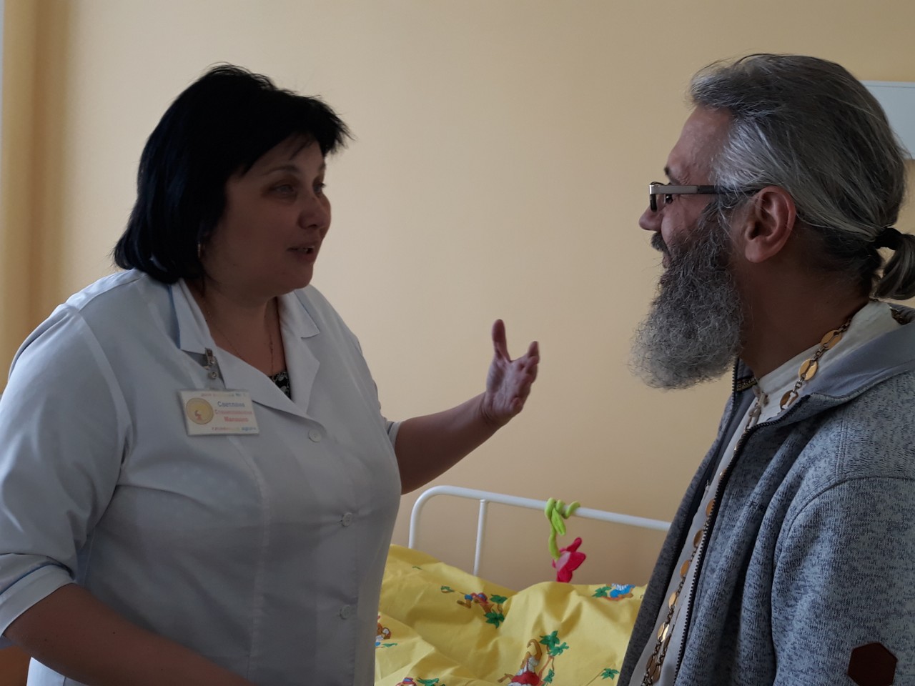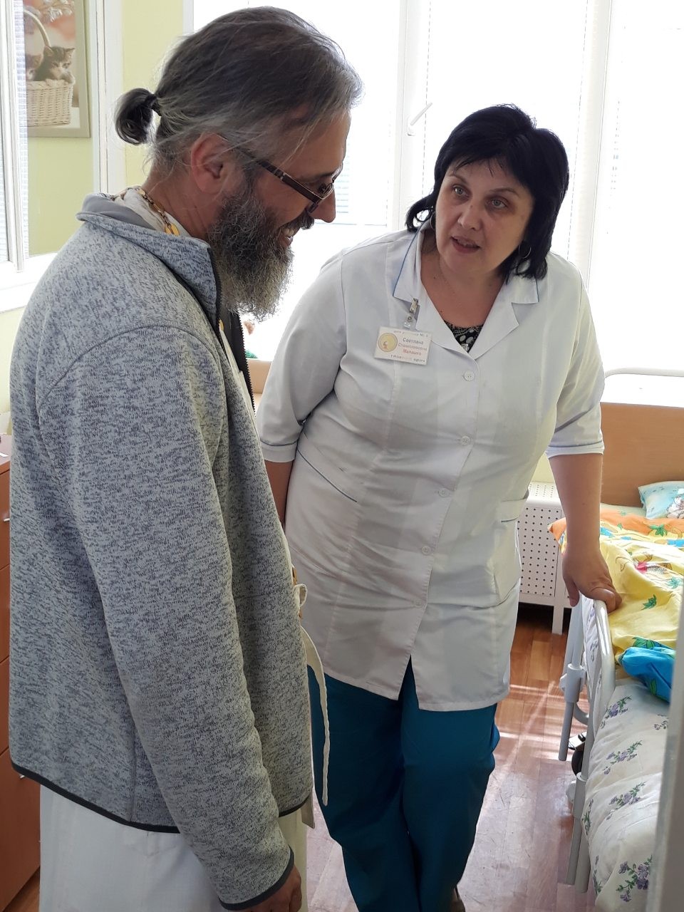 Протоиерей Кирилл Шолков вместе с главврачом Светланой Станиславовной поздравили медицинских работников Дома ребенка и деток. Навестили палаты паллиативного ухода.