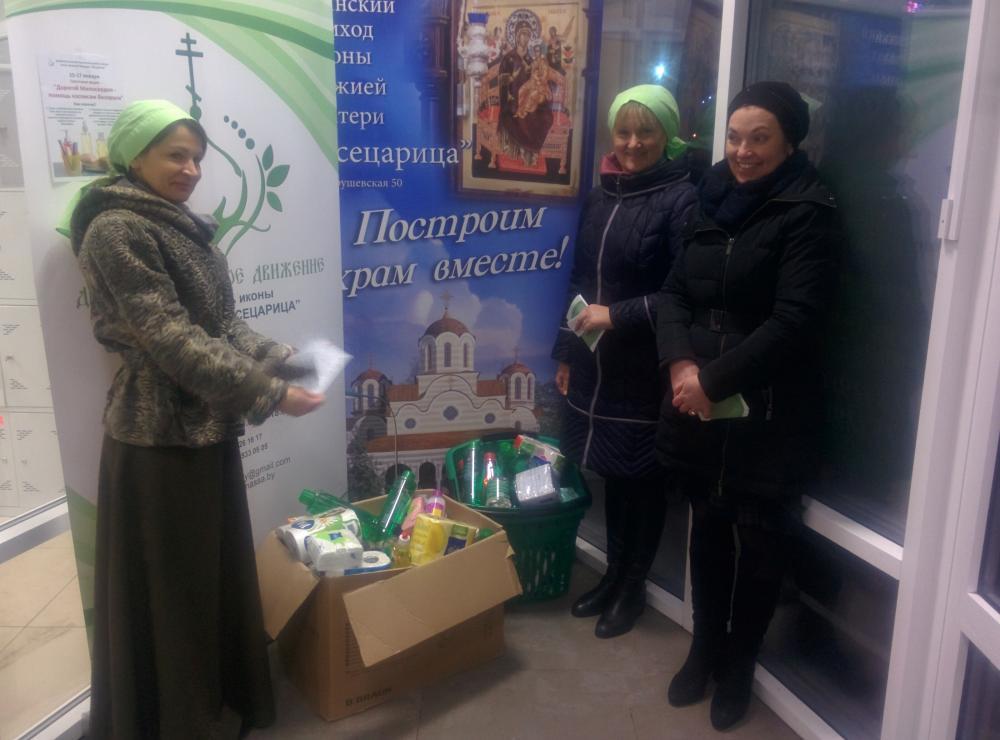 В канун праздника Богоявления добровольцы стояли три вечера подряд в магазине “Калi Ласка” по 3-й улице Щорса, д. 5. Раздавая посетителям магазина листовки, участники добровольческого движения рассказывали, что собирают необходимые средства гигиены и канцтовары для Отделения паллиативной медицинской помощи «Хоспис» (Минск, ул. Автодоровская, д. 3а) и Быстрицской участковой больнице с палатами паллиативной помощи в составе учреждения здравоохранения «Копыльская центральная районная больница» (Копыльский р-н). Люди с радостью откликались на призыв о помощи и в канун праздника Крещения Господня старались помочь кто чем может.
