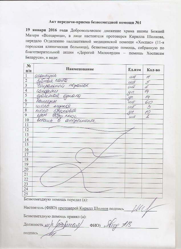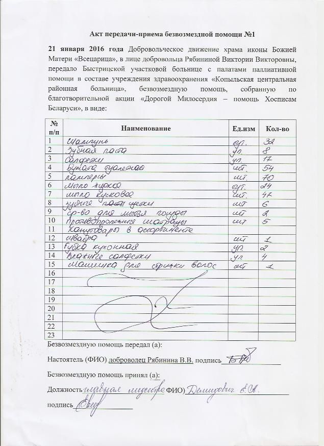 19 января в праздник Богоявления собранные по акции вещи были переданы в Отделение паллиативной медицинской помощи «Хоспис» (Минск, ул. Автодоровская, д. 3а).
