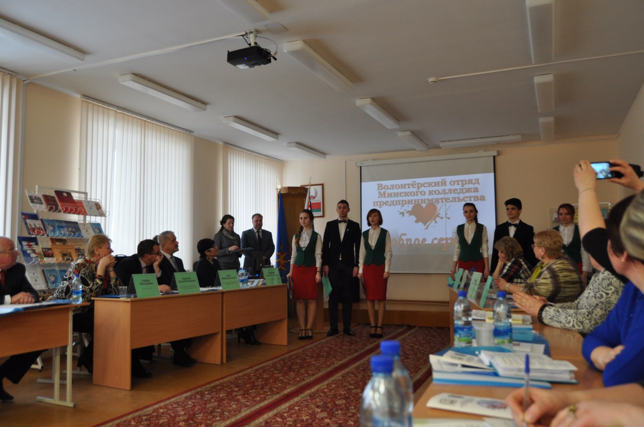 Продвижение добровольческого служения в составе волонтерских отрядов является одним из важнейших направлений воспитательной деятельности учреждений среднего специального образования. Со своими докладами выступили директора средних специальных учреждений: Гришкевич Галина Витальевна (УО «Минский государственный медицинский колледж»), Молотовник Виктор Владимирович (ЧУО «Минский колледж предпринимательства»), Космач Георгий Владимирович (филиал БГУ «Минский торговый колледж»), Лагунова Галина Николаевна (УО «Минский торговый колледж» Белкопсоюза), Крупенченков Владимир Александрович (УО «Белорусский государственный медицинский колледж»). Также выступили представители ОБО «Белорусский детский хоспис», ГУ «Дом-интернат для пенсионеров и инвалидов».