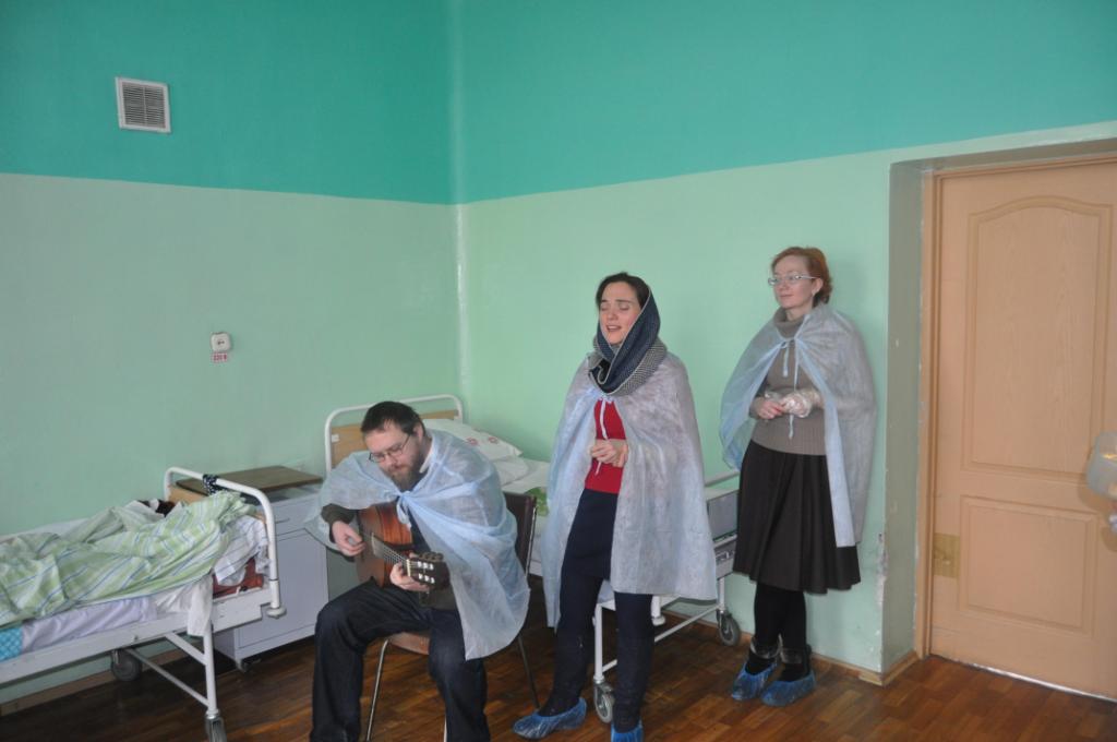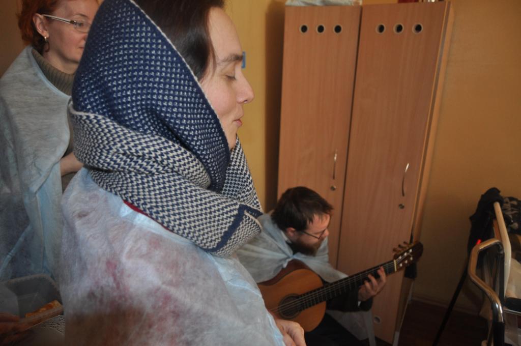 Добровольцы посетили отделение паллиативной медицинской помощи "Хоспис" и вместе с пациентами отметили Масленицу. На просьбу помочь с музыкальным сопровождением откликнулся замечательный гитарист Юрий Шишко, добровольцы исполнили любимые песни пациентов. По случаю Дня рождения одной пациентки все присутствующие пожелали ей Многая лета. Затем добровольцы угостили всех с любовью приготовленными блинами.