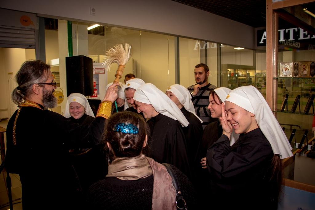 На протяжении дня добровольцы знакомили посетителей торгового центра с деятельностью движения, все желающие смогли послушать выступление хора "Радуйся", передать средства гигиены и другие нужные вещи пациентам хосписов, поучаствовать в благотворительной ярмарке, в мастер-классах по различным видам рукоделия, для детей проходили показы батлейки.