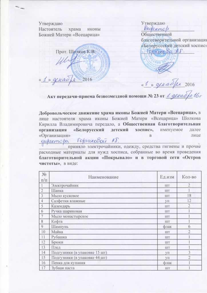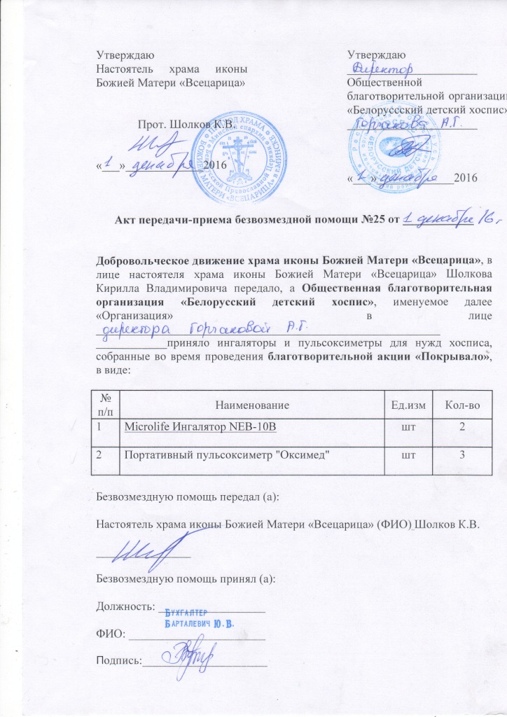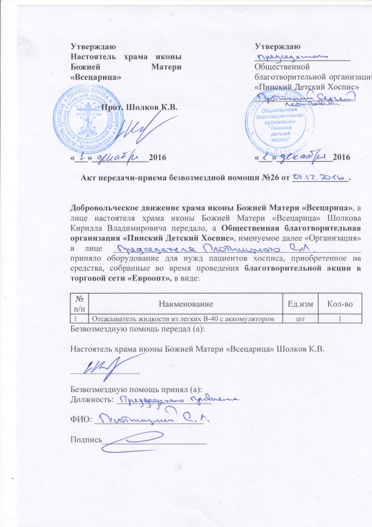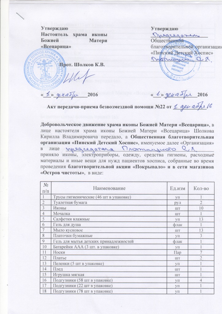 2 декабря координаторы добровольческого движения храма иконы Божией Матери "Всецарица" посетили Белорусский детский хоспис и Пинский детский хоспис, где передали вещи и средства гигиены, собранные во время проведения акции "Покрывало", а также долгосрочной акции в сети магазинов "Остров чистоты", для пациентов Пинского детского хосписа также был приобретен отсасыватель жидкости из легких. Благодарим всех за вашу помощь и молитвы!