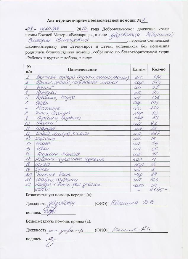 Руководство Сенненской школы-интерната в лице директора Козлова Леонида Леонидовича выразило огромную благодарность Белорусской Православной Церкви, настоятелю храма иконы Божией “Всецарица”, председателю Синодального отдела по церковной благотворительности и социальному служению протоиерею Кириллу Шолкову, всем добровольцам и каждому жертвователю лично. “Ваша помощь, служит примером доброты и внимательности, небезразличного отношения к детям со сложной судьбой” – отметил Леонид Леонидович.